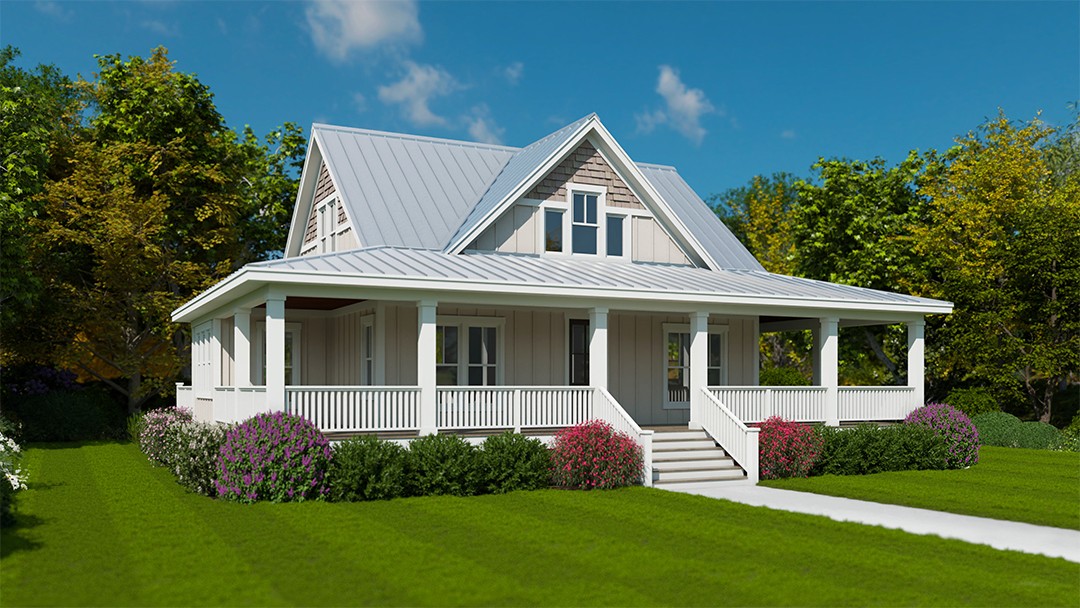 Front-facing house plans often incorporate features that take advantage of front views on a property. The main living area will also be facing the front and sometimes the owner’s suite as well. Features that take advantage of these views are porches, large windows and sliding doors.