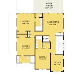 Bartlett Bay is a spacious plan, beautifully balancing communal and private spaces. At its heart is a spacious dining and living area, perfect for gatherings and relaxation. The adjacent kitchen is well-equipped, featuring a convenient pantry and room for a refrigerator, catering to culinary enthusiasts. The primary suite is a private oasis, complete with an ample bedroom, luxurious bath, and separate his and hers walk-in closets. Outdoor living is enhanced by two welcoming porches. Additional thoughtful touches include a practical laundry room and storage spaces, all designed for comfortable living.