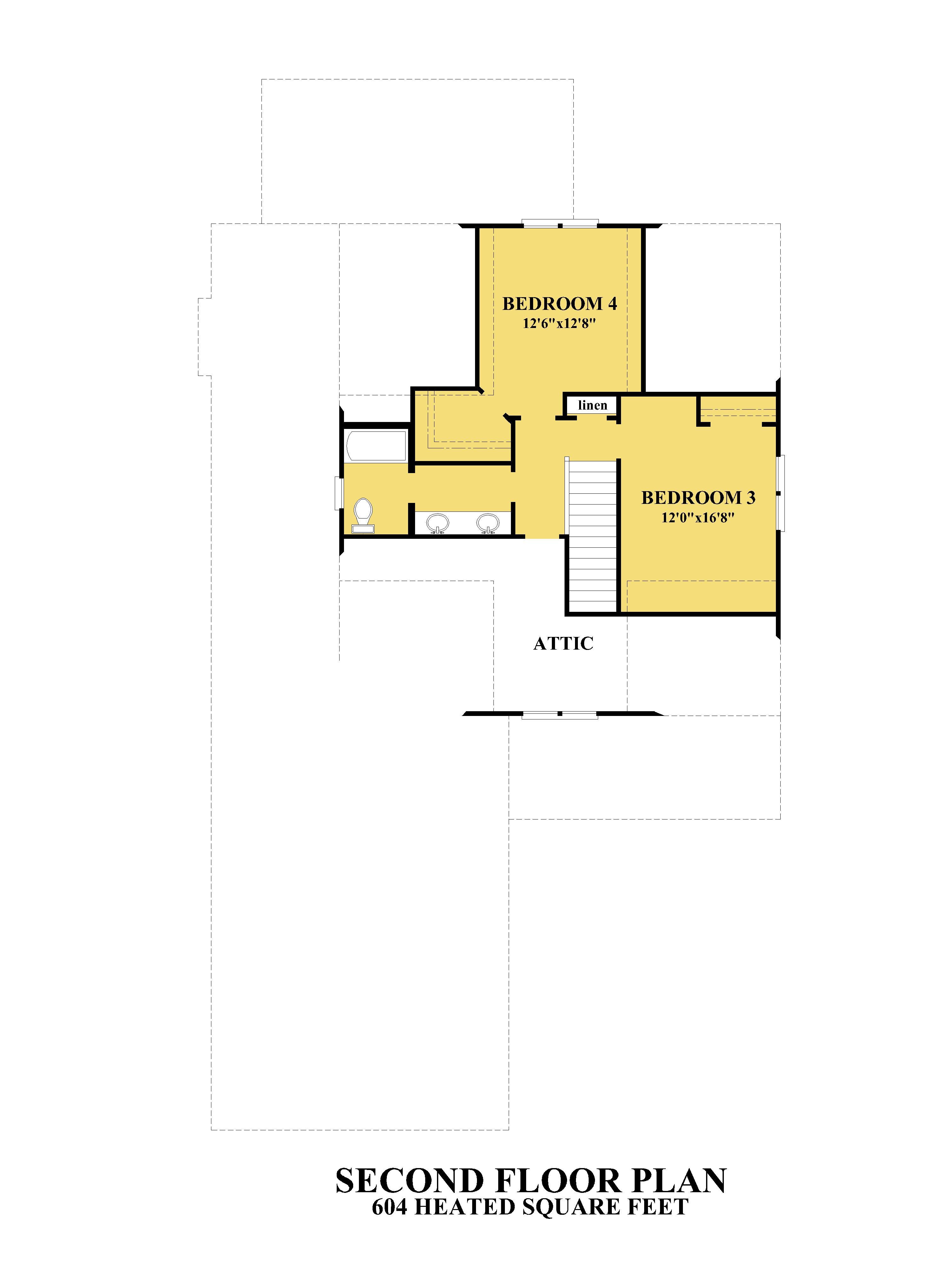 The second floor is arranged to provide comfortable private living spaces, featuring two additional bedrooms connected by a shared bathroom and hallway with linen storage. This level offers a quiet retreat from the main living areas below, making it ideal for family members or guests. The layout balances privacy with accessibility to the stairway, creating a practical and efficient upper-level living space.