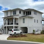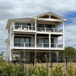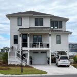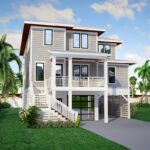 Blounts Bay is a coastal contemporary reverse plan allowing wonderful view from the top floor open living area. The elevator serves all three floors.