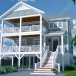 A traditionally styled Coastal house plan with a large living room and kitchen located on the upper floor for great views from the front of the home.
