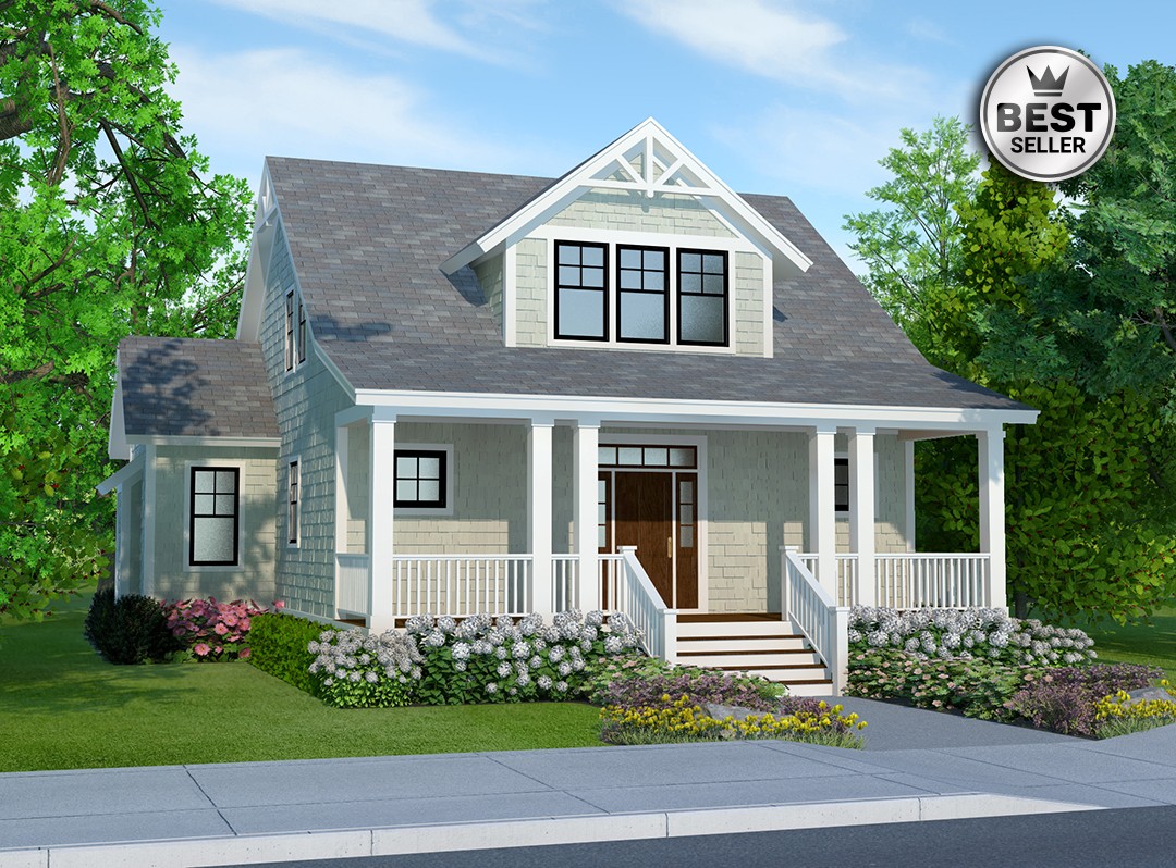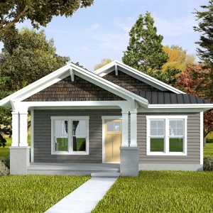This perfect little bungalow lives large with its open floor plan. The owner’s suite has a vaulted ceiling, his and hers closets and a spacious bathroom. This plan is a great choice for a narrow lot.