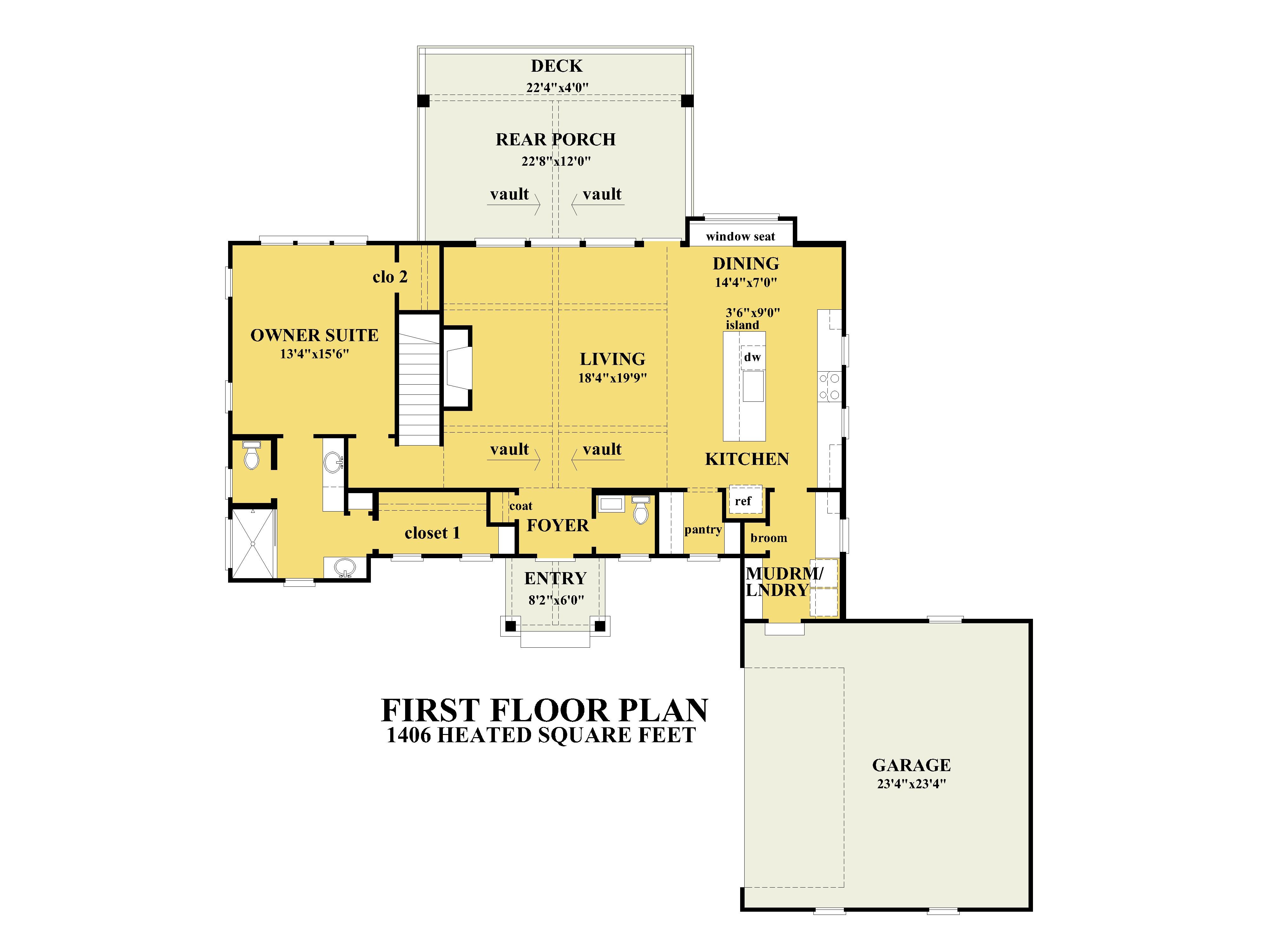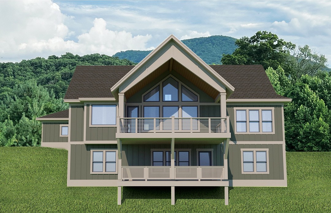 Our Hollowcrest is the perfect plan for a rear oriented lake or mountain view property. The first floor features an open living space with a vaulted living room that carries out though to the rear porch.