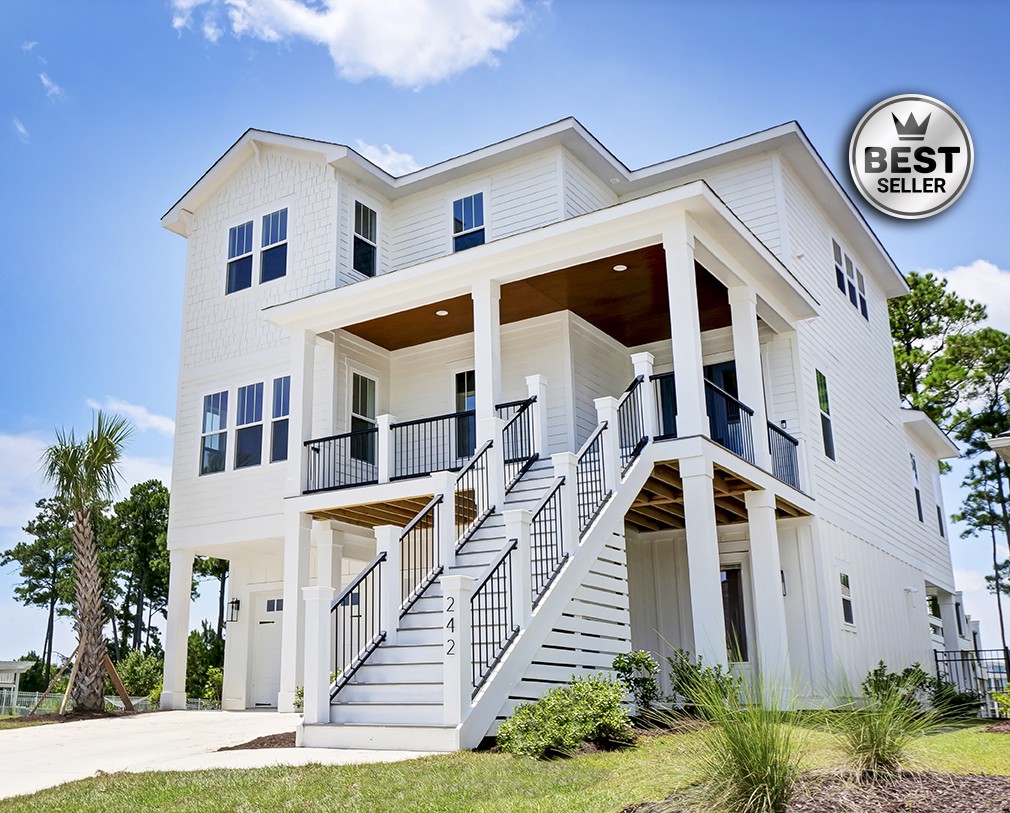This coastal plan takes advantage of the view in the front and back. Spacious kitchen is open to the dining and living with access to the rear decks. Enjoy a generous master suite complete with private balcony. The ground floor has a large recreation area that can be finished for even more space.