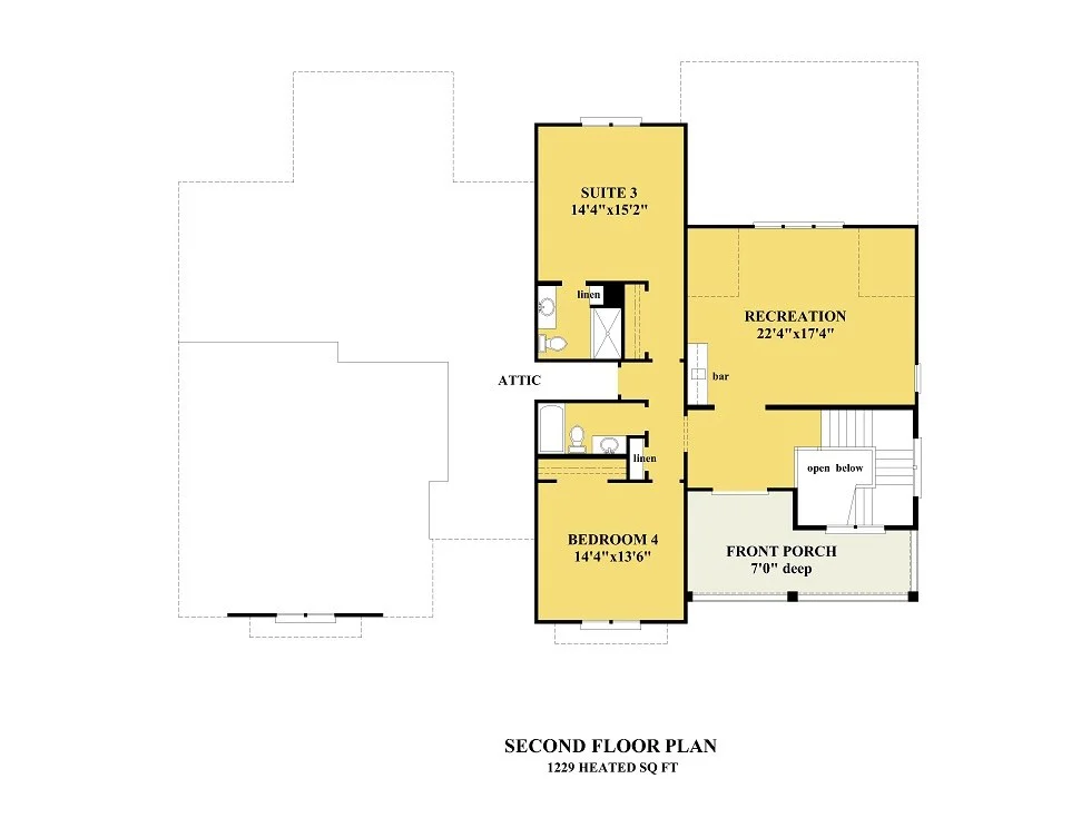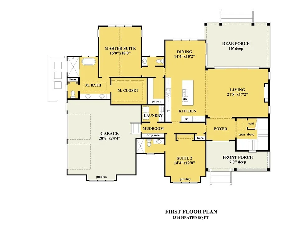 A great family home, Oakwood features a first floor master suite and guest suite. The open living plan opens up the the oversized rear porch. Upstairs there is two bedrooms, large recreation room and the ability to expand the living area over the unfinished garage.